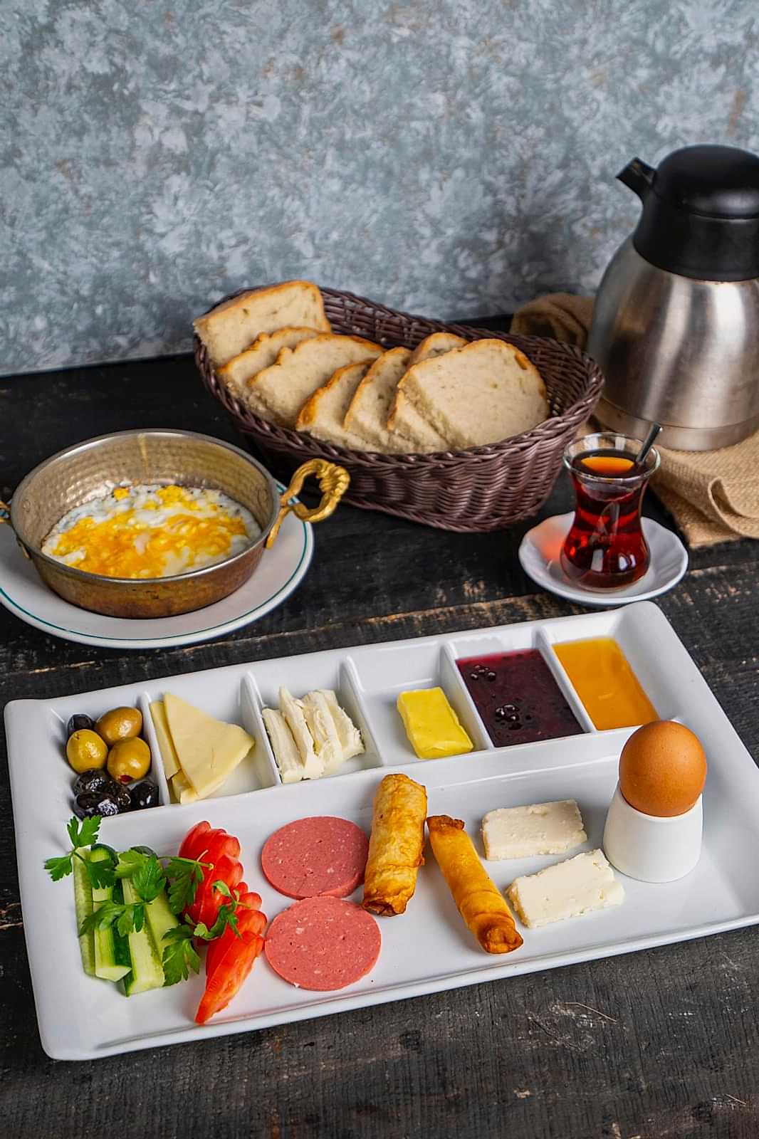 Geleneksel çömlek yemekleri modern bir tarzda sunuluyor.